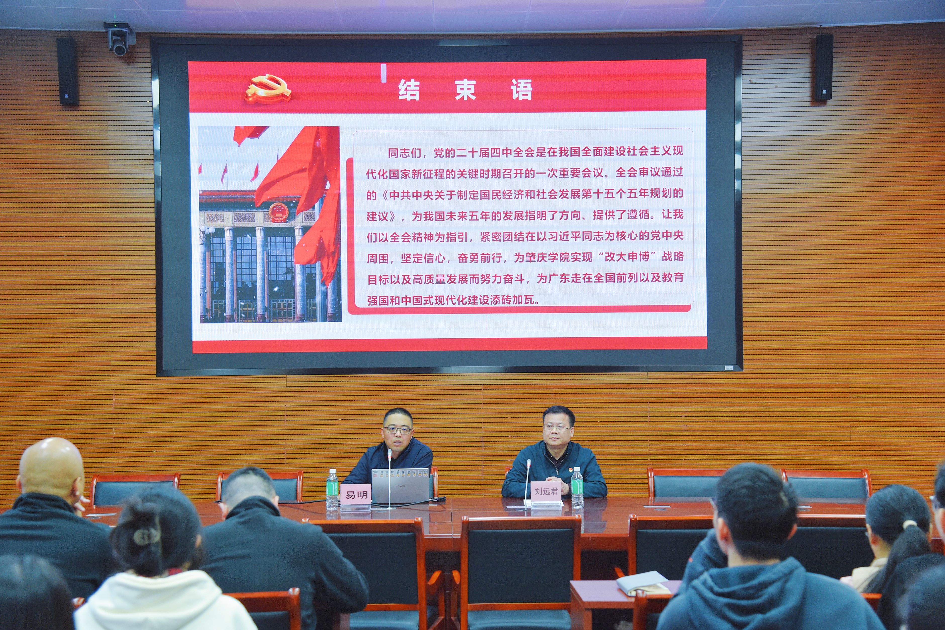 刘远君在总结讲话中指出,党的二十届四中全会是在我国全面建设社会主义现代化国家进程中的关键会议,审议通过的“十五五”规划建议描绘了国家未来发展的清晰路径。他强调,全院师生要把学习贯彻全会精神作为当前重要政治任务,自觉把思想和行动统一到中央决策部署上来,主动将学习成果转化为推动学院学科建设、人才培养、科学创新的强大动力,积极服务学校“改大申博”发展目标,为助力广东高质量发展、扎实推进教育强国建设、谱写中国式现代化新篇章贡献智慧与力量。