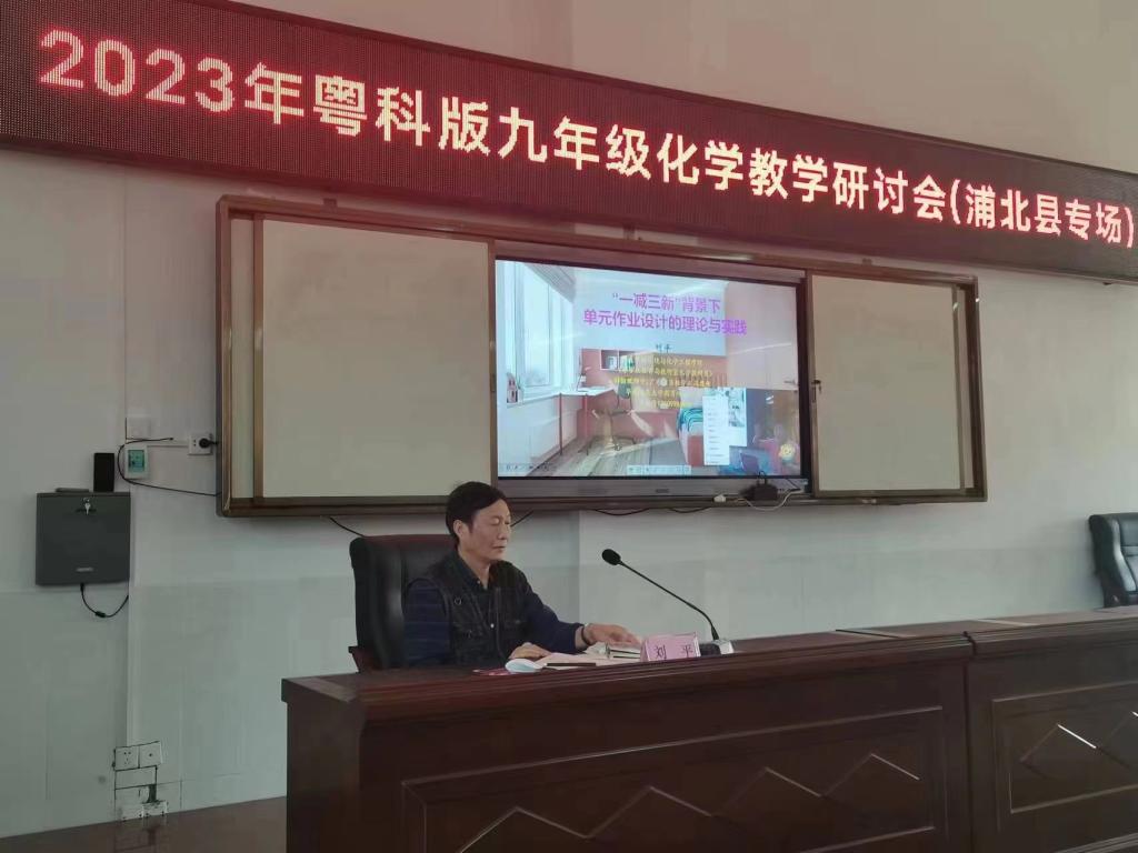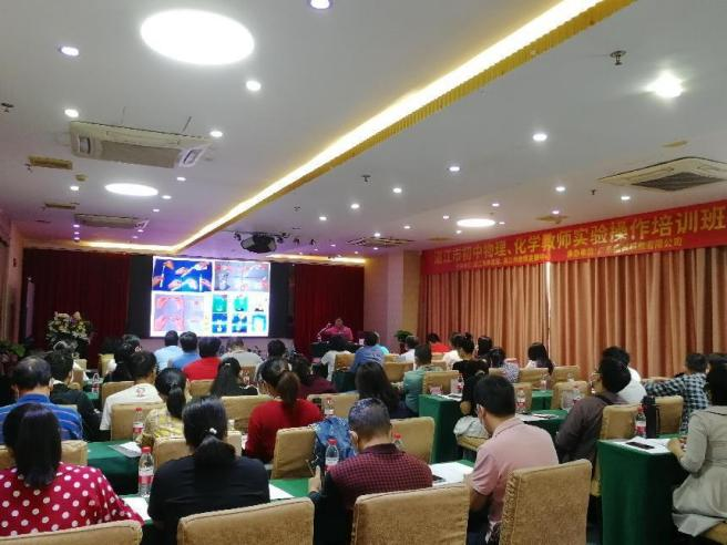 2023年3月2日,刘平老师为湛江市初中化学教师进行题目为“双减及新课标背景下的初中化学实验教学”的实验教学培训现场: