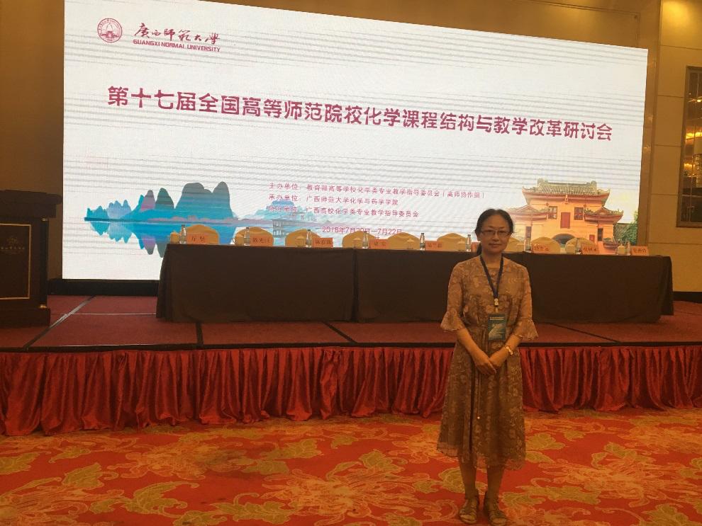2018.7.20-22,化学专业系主任吴燕妮教授参加了由广东省教师教育联盟主办,在广西桂林广西师范大学举办的“第十七届全国高等师范院校化学课程结构与教学改革研讨会”。