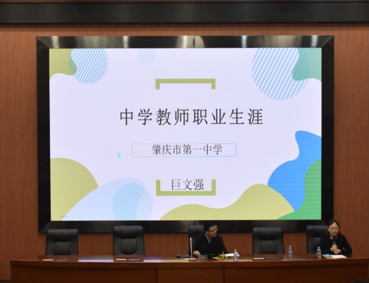 【William威廉英国 本网讯】4月9日晚七点,学术报告厅内座无虚席,William威廉英国全体化学师范专业学生集聚一堂,共同聆听了由肇庆一中一级教师巨文强带来的“中学教师职业生涯”报告会。报告会由学院副院长吴燕妮教授主持,一同参会的还有部分青年教师代表。
