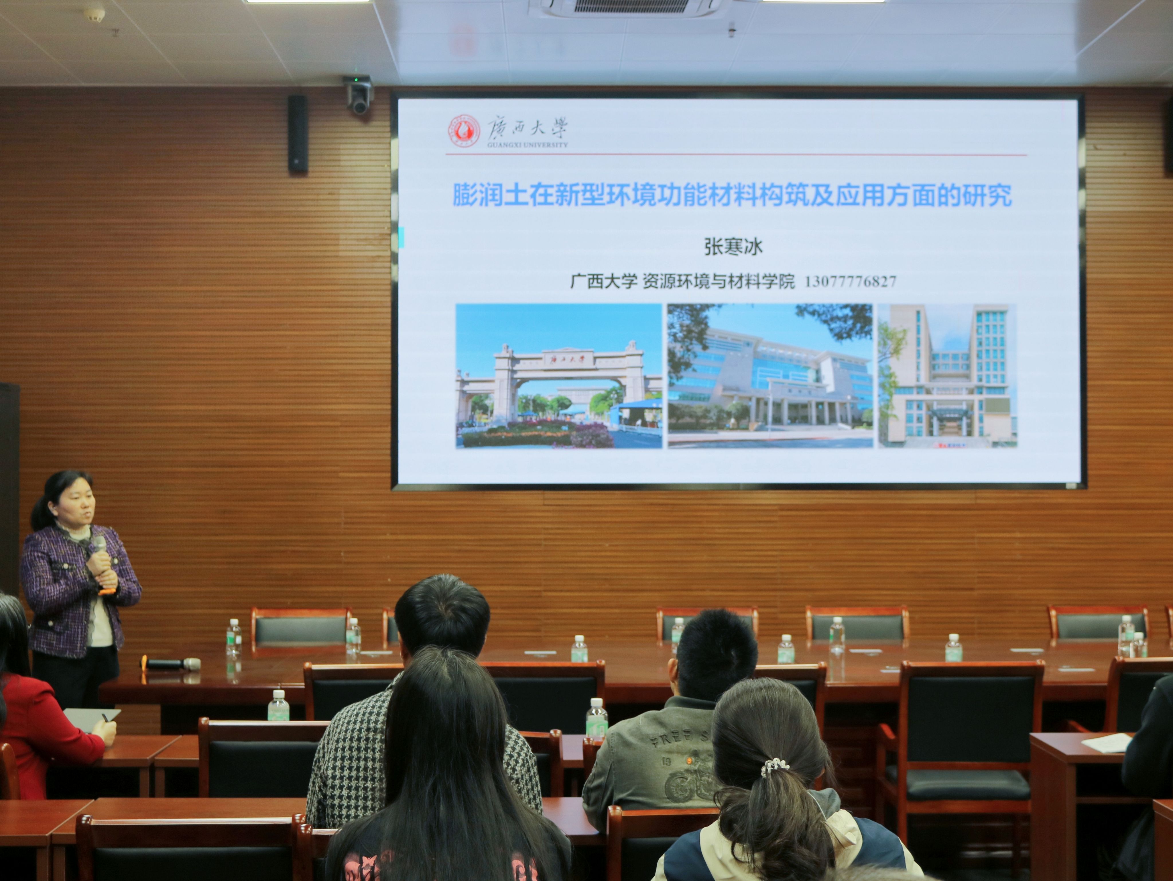 2025年3月19日下午,广西大学资源环境与材料学院张寒冰教授应邀作专题讲座。张寒冰教授长期从事新型催化、吸附及光热催化材料的开发及三废处理应用等科研工作,主持多个国家级、广西壮族自治区级科研项目,2022年获广西自然科学奖二等奖。本次讲座聚焦膨润土新材料的研究背景、功能构建及其在催化材料、凝胶强化等领域的应用。