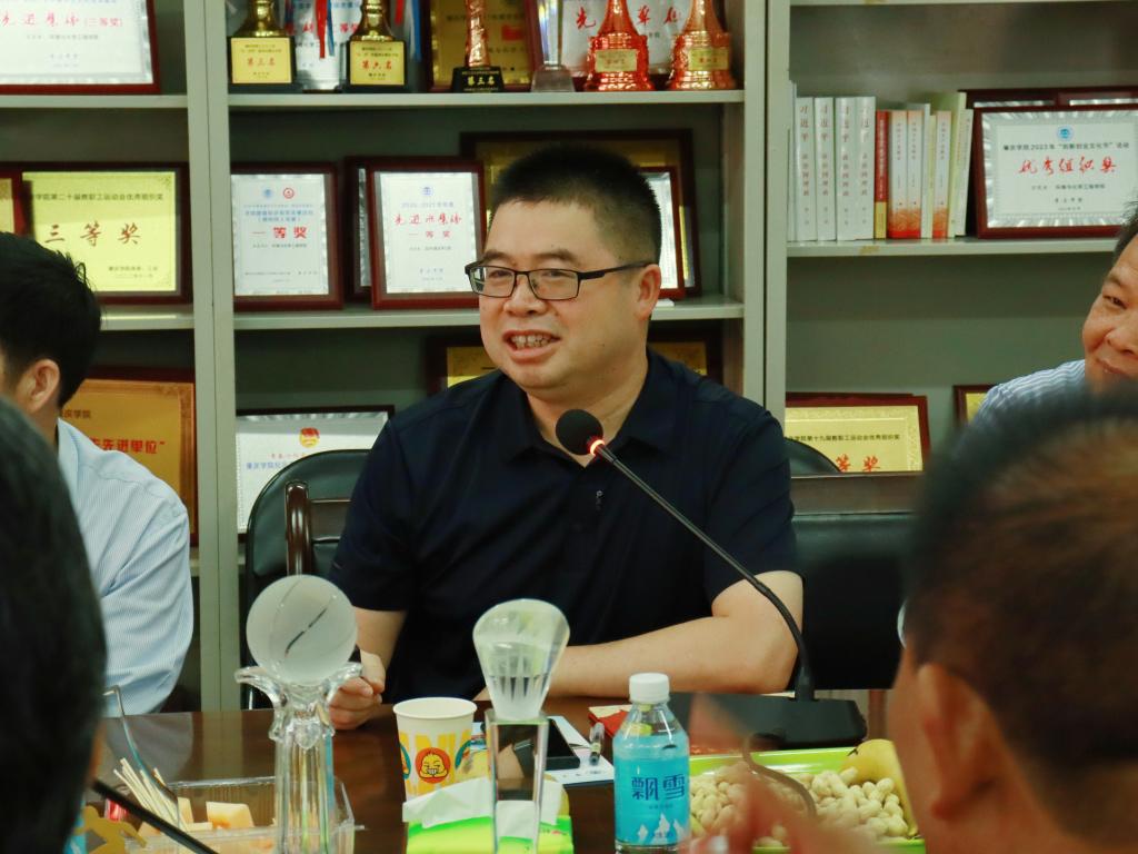 座谈会上,唐冬冬副校长代表学校对校友们的返校表示热烈的欢迎,并通过图文并茂的形式向校友们介绍了学校近年的发展成就,他表示,学校今天所取得的成绩离不开历届学校领导和师生们的努力拼博,开拓创新、心血和汗水,特别对上一届党委曾桓松老书记等领导带领下学校在省属高校建设、硕士学位授予权建设、新校区规划与建设等方面所做出的突出贡献表示崇高的敬意和衷心的感谢。希望老领导、校友们能一如既往关注关心支持母校的发展,为母校的发展建言献策。