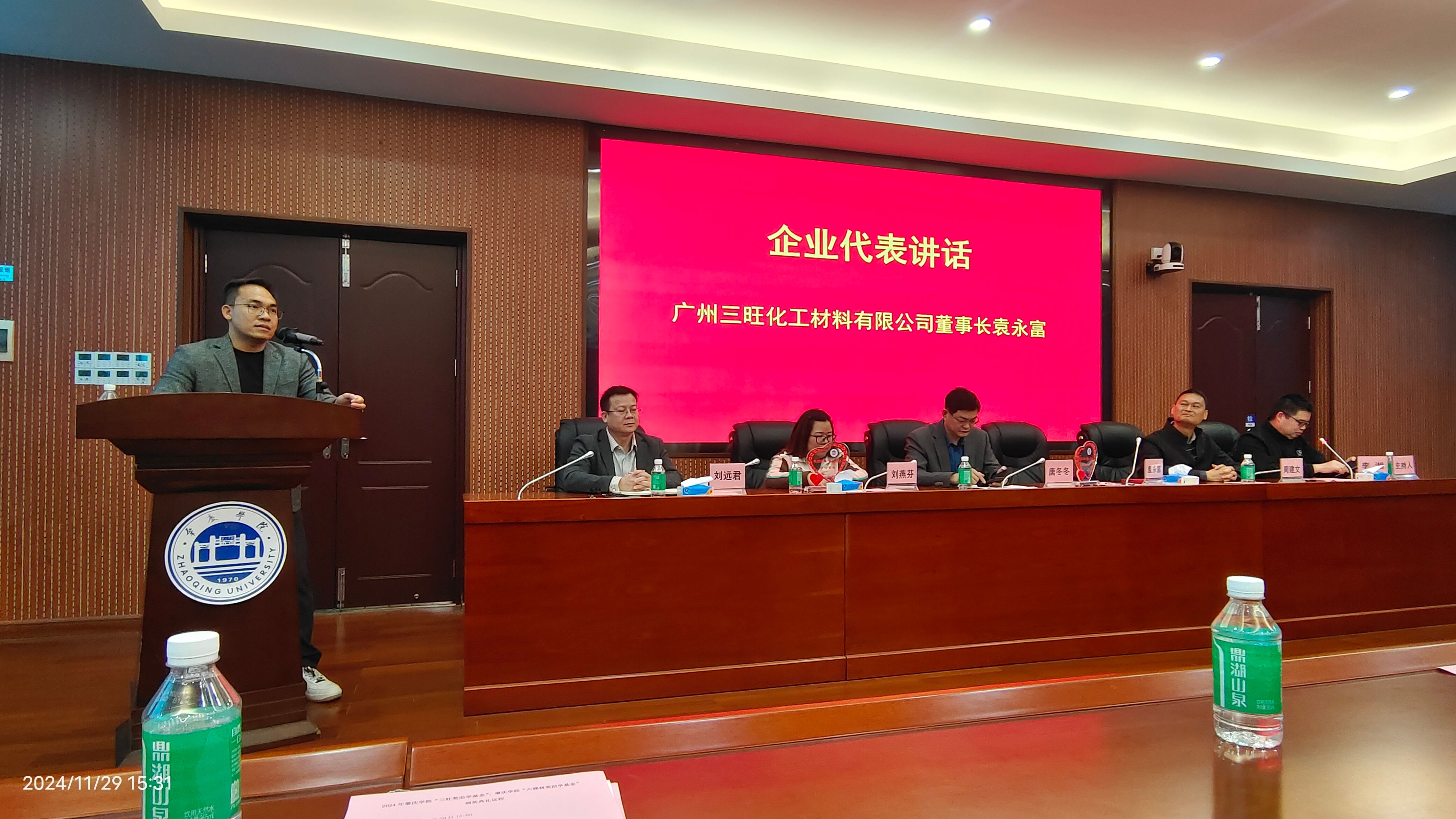 会上,广州三旺化工材料有限公司董事长袁永富分享了其在大学期间学习情况以及迈进社会创业的丰富经历,并对环化学子提出了在大学期间要找到自己的兴趣所在并全力以赴,学好、学精专业知识,积极参加社会实践,丰富自身素养。