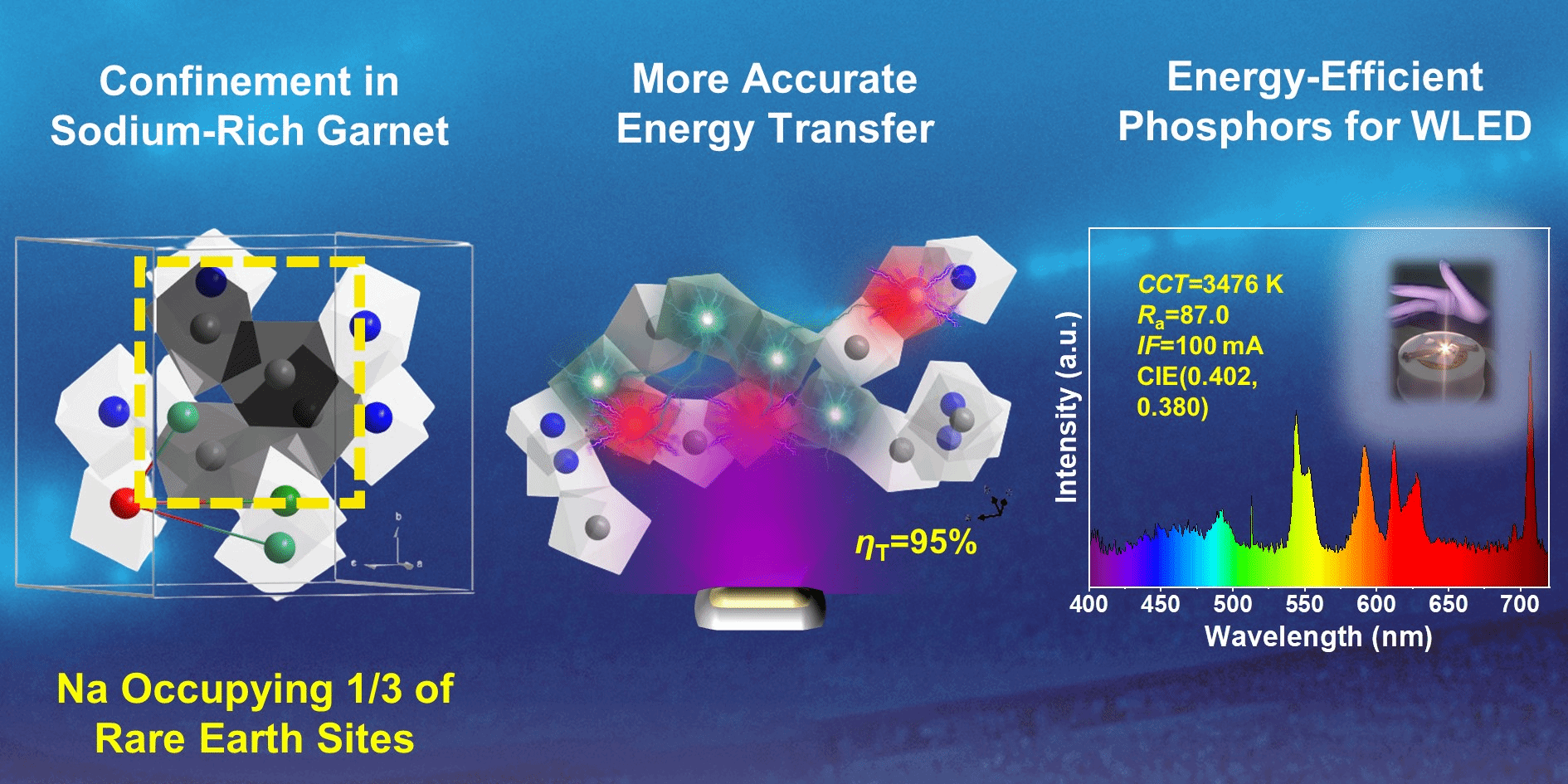 精准能量传递:高效白光LED材料开发(论文标题:Structural confinement helps achieve more accurate energy transfer: studies on garnet structural NYGlG: Tb³⁺,Eu³⁺ phosphors)