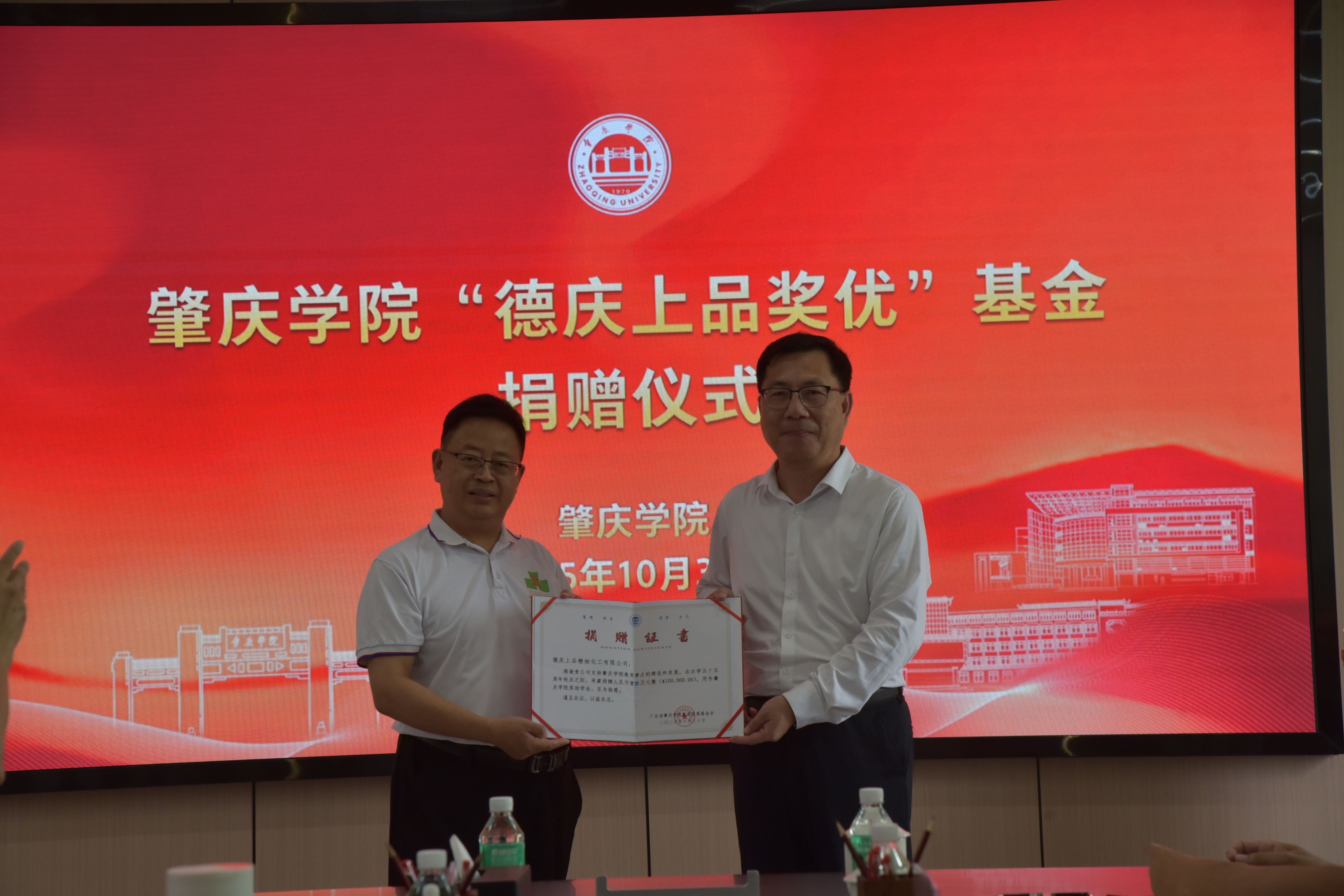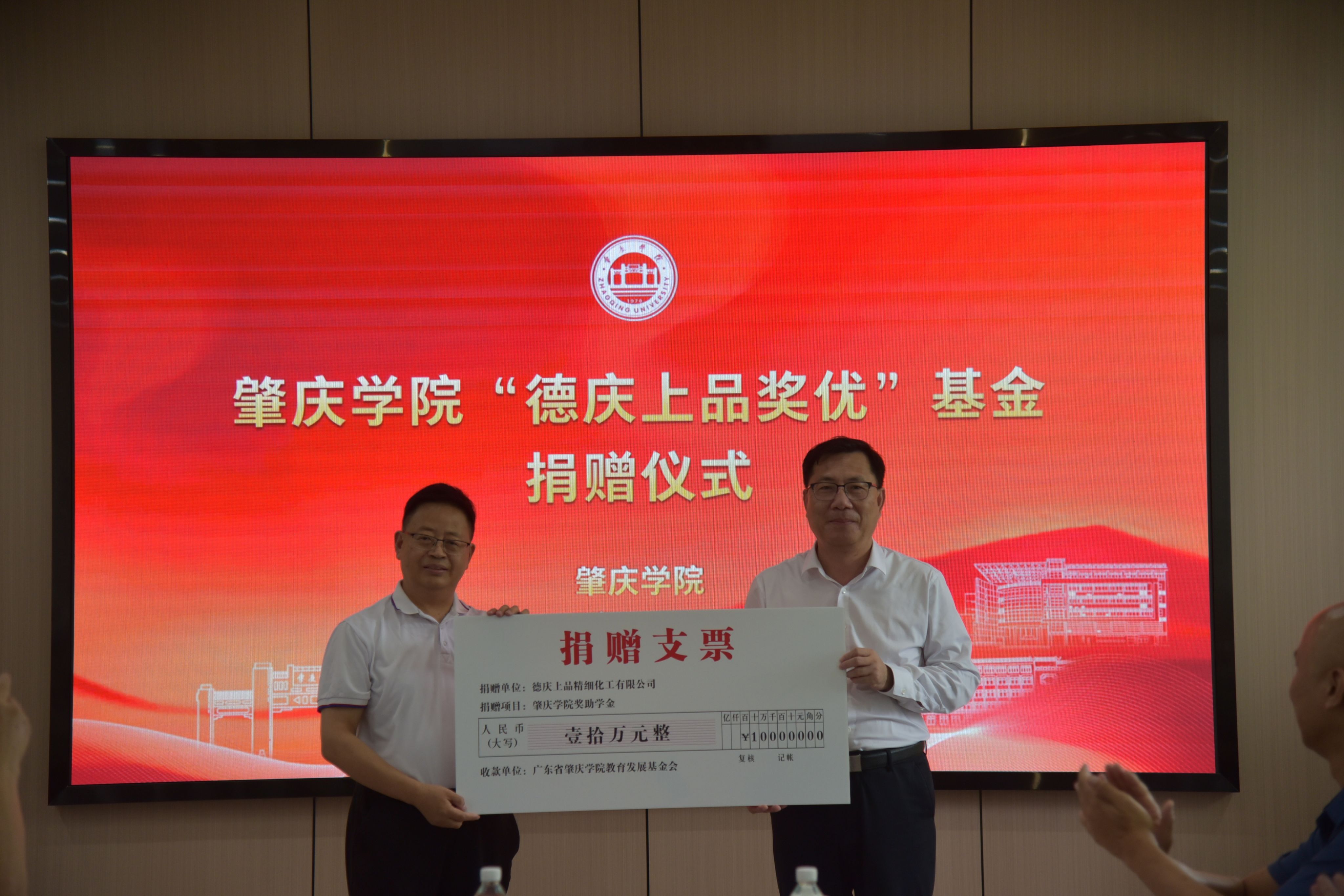 仪式上,周启斌代表德庆精细化工有限公司向williamhill捐赠“德庆上品奖优”基金人民币10万元,其中5万元将专项用于奖励William威廉英国品学兼优的学子。