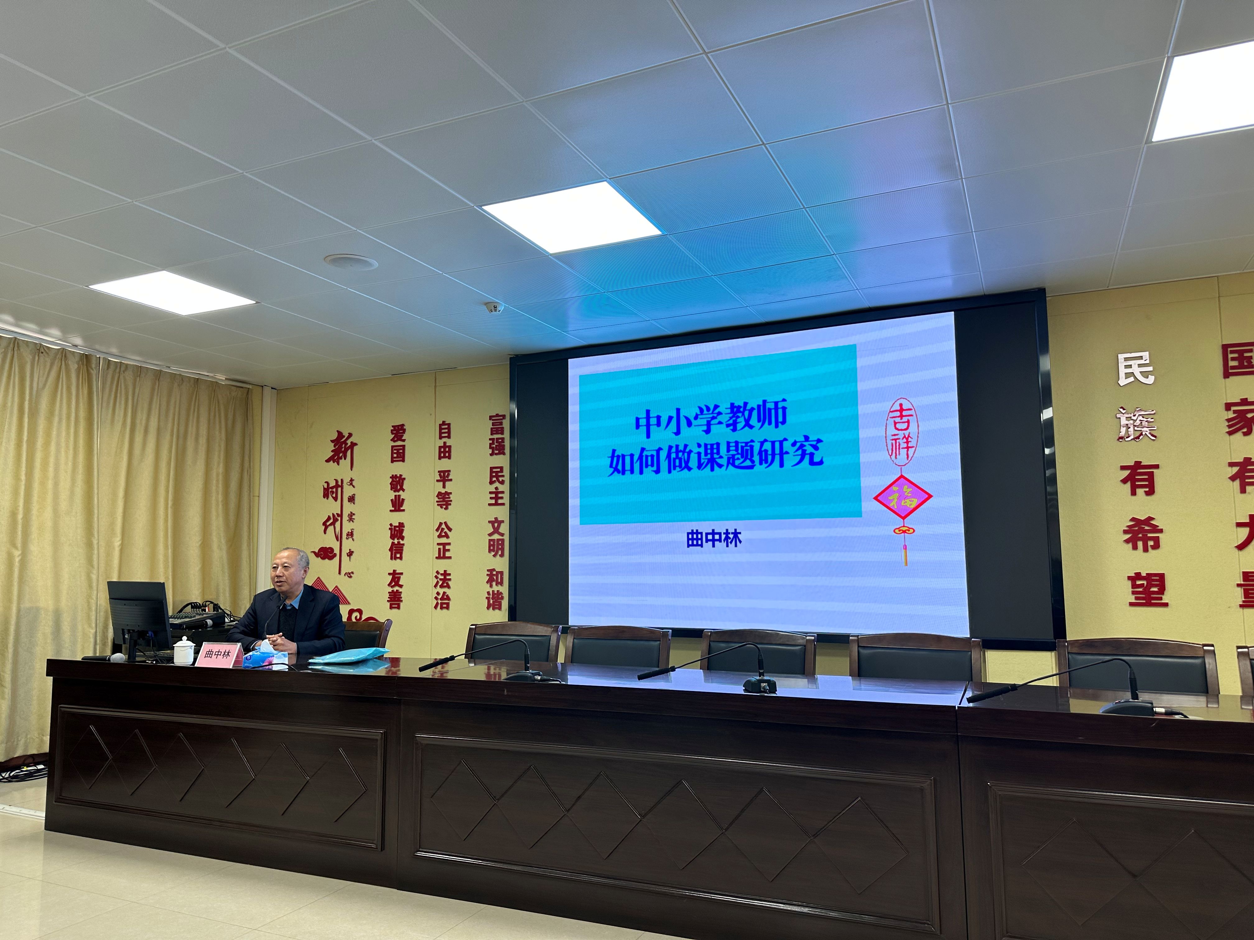 讲座特邀曲中林教授担任主讲嘉宾。曲教授围绕《中小学教师如何进行课题研究》这一主题,深入浅出地剖析了教育科研的核心价值,直击科研实践中常见的认知误区,并系统梳理了课题研究的完整流程与申报书撰写的关键技巧。通过一系列鲜活的教学案例,曲教授的讲解既接地气又富有启发性,令与会教师受益匪浅。讲座的互动环节,教师们积极提问,曲教授耐心解答,现场气氛热烈。