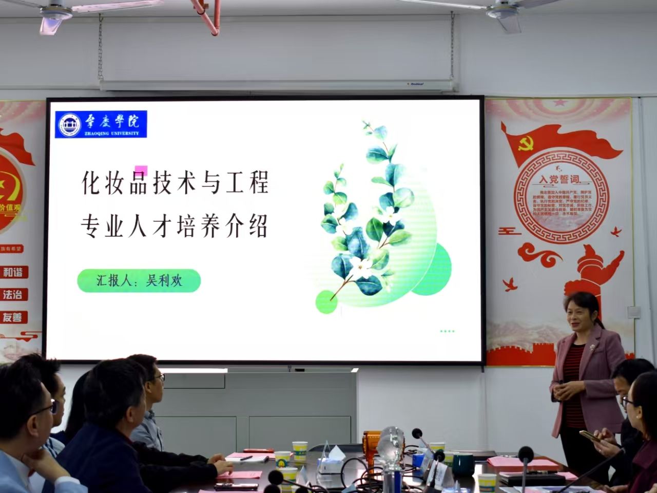 会议由学院院长李湘主持,党委刘远君书记致欢迎词,九州集团总经理陆培铭、文化总顾问朱英中分别在会上发言。会中九州集团项目负责人对德庆县美景日化美妆产业园进行了详细的介绍。williamhill国家科技园主任肖俊霞也在会上介绍科技园的情况以及相关政策,希望加强与产业园的沟通与合作。我院化妆品专业负责人吴利欢教授则在会上介绍了化妆品专业的发展、招生情况,并展示了学生获得的荣誉情况和作品。环境系主任秦剑桥教授也在会上介绍了环境系的情况,以及对产业园的建设提出了环保方面的建议。等等。