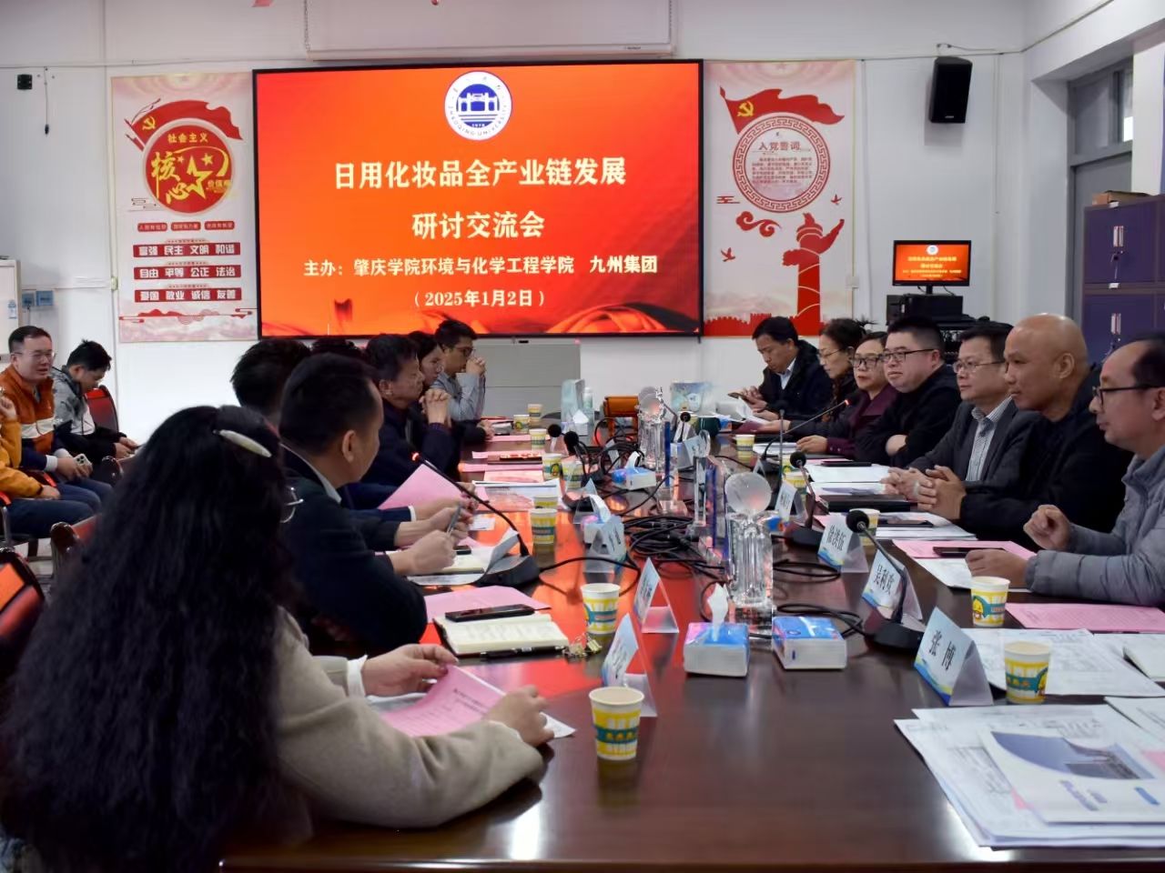 2025年1月2日,2025年的第一个工作日,我院与九州集团开展关于日用化妆品全产业链发展研讨会。研讨会以九州集团投资的德庆县美景日化美妆产业园为基础,对日用化妆品研发生产、外观设计、污水处理以及产学研合作等环节进行深入探讨,达成合作共识。