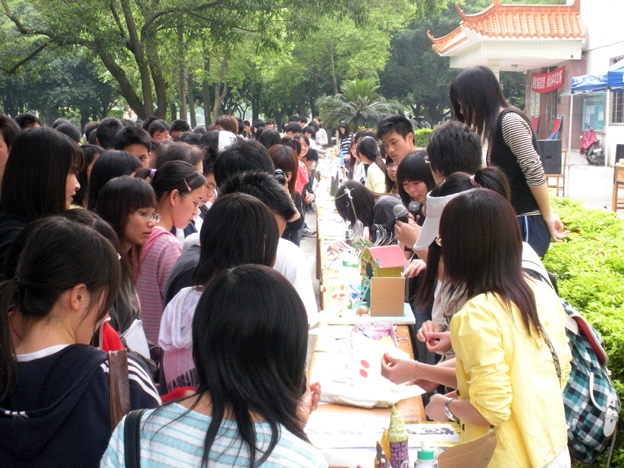 4月11日下午,化学楼前的过道临时摆设的展示台前簇拥了一大批观众。原来,由我院科创部、生命科学学院学术部以及生活部联合举办的我校第三届“废品资源化”大赛正在火热进行中。只见桌面上整齐地展示着各种各样的手工作品,吸引了大批同学的围观。
