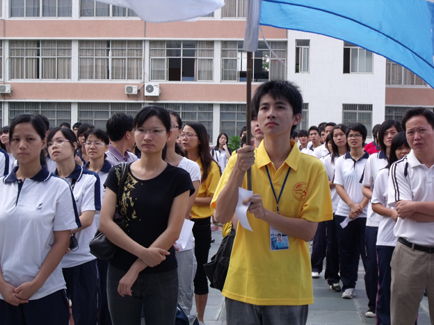 我院党委副书记陈玉华、政治辅导员胥家祯老师带领我院“三下乡”队员出席参加了该仪式。仪式包括学校代表发言、市团委领导讲话、授旗仪式、学校领导讲话以及全体队员宣誓等五项内容。在授旗仪式中,我院“三下乡”队员代表欧耀铭同学从市团委副书记蔡燕霞手中接过锦旗,正式奏响了我院2009年暑期大学生“三下乡”活动的进行曲。