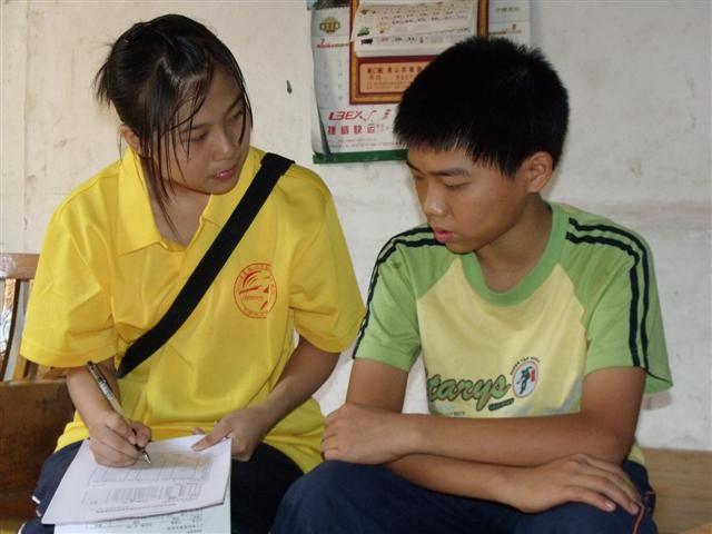 队员们在采访市民和填写调查问卷