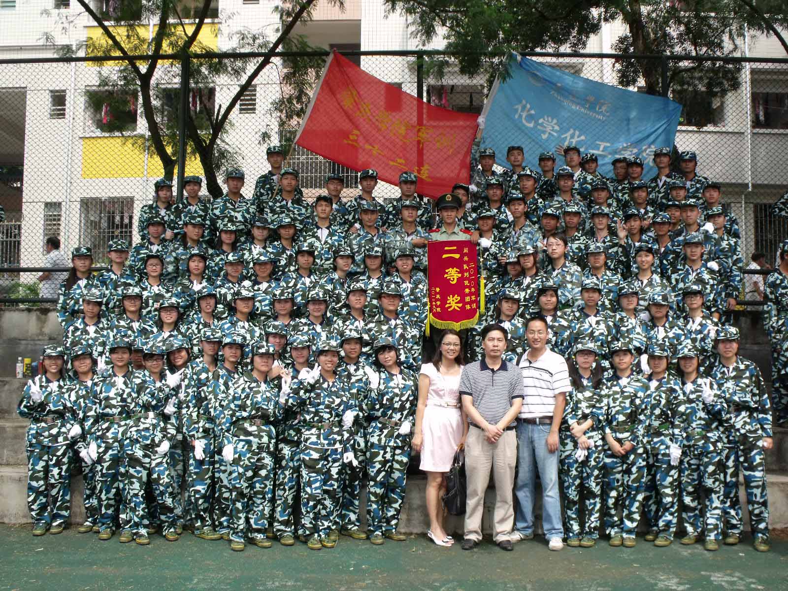 优异的成绩是对10级新生努力的肯定,也是新生对教官的回报。阅兵仪式结束后,我院书记李文明、副书记陈玉华和辅导员胥家桢、刘黎明与各连的教官和新生一起合影留念。