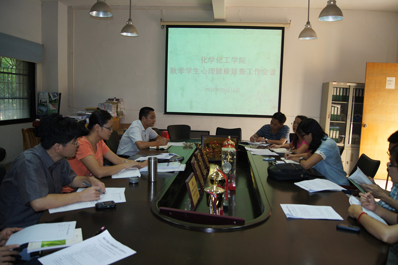 为切实做好我校2012年秋季学生心理健康排查工作,防患于未然。10月11日早上8点30分,学院在院楼会议室召开秋季心理健康排查工作会议。党委书记李文明、副书记陈玉华、辅导员及全体班主任出席此次会议。