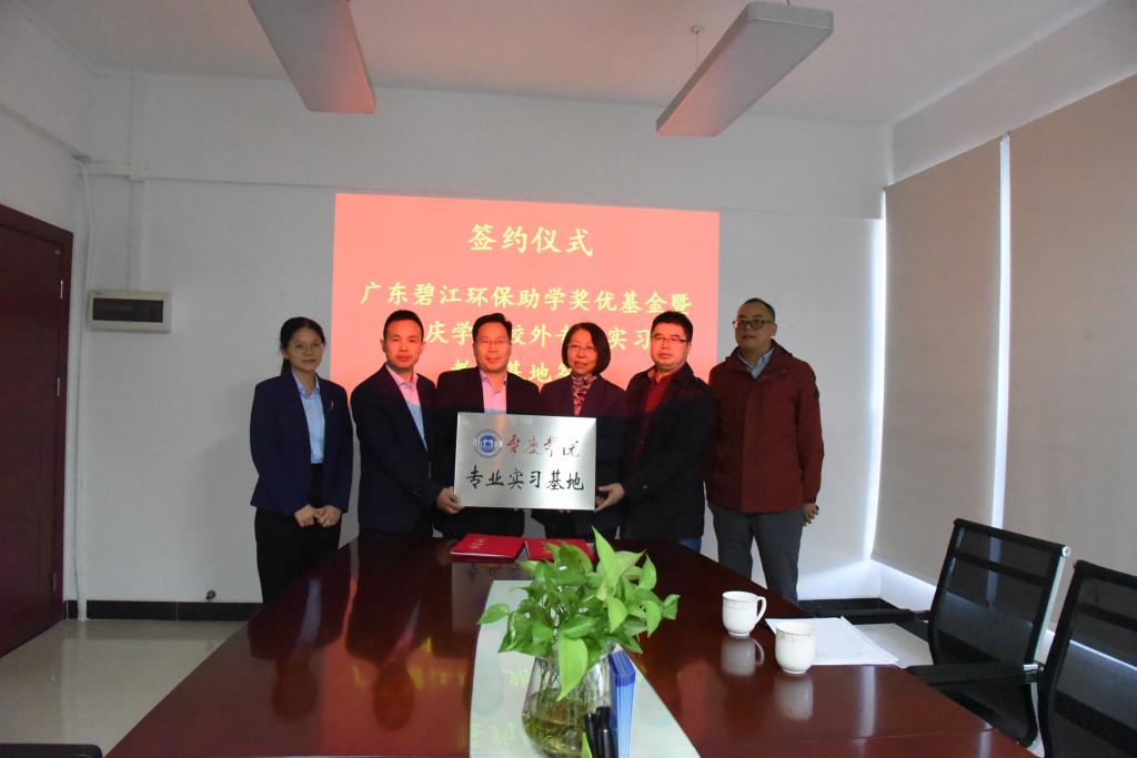 12月1日,William威廉英国与广东华锋碧江环保科技有限公司联合举行“广东碧江环保助学奖优基金暨williamhill校外专业实习教学基地签约仪式”。院长郝向英、党委书记李湘、副院长吴贤格出席活动。