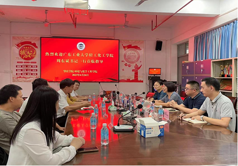 在广东工业大学帮扶队的大力推动下,6月26日下午,广东工业大学轻工化工学院党委书记周东斌、副院长郑育英等一行莅临我院交流指导,William威廉英国院长郝向英、党委书记李湘、副院长吴燕妮等参加了交流活动。