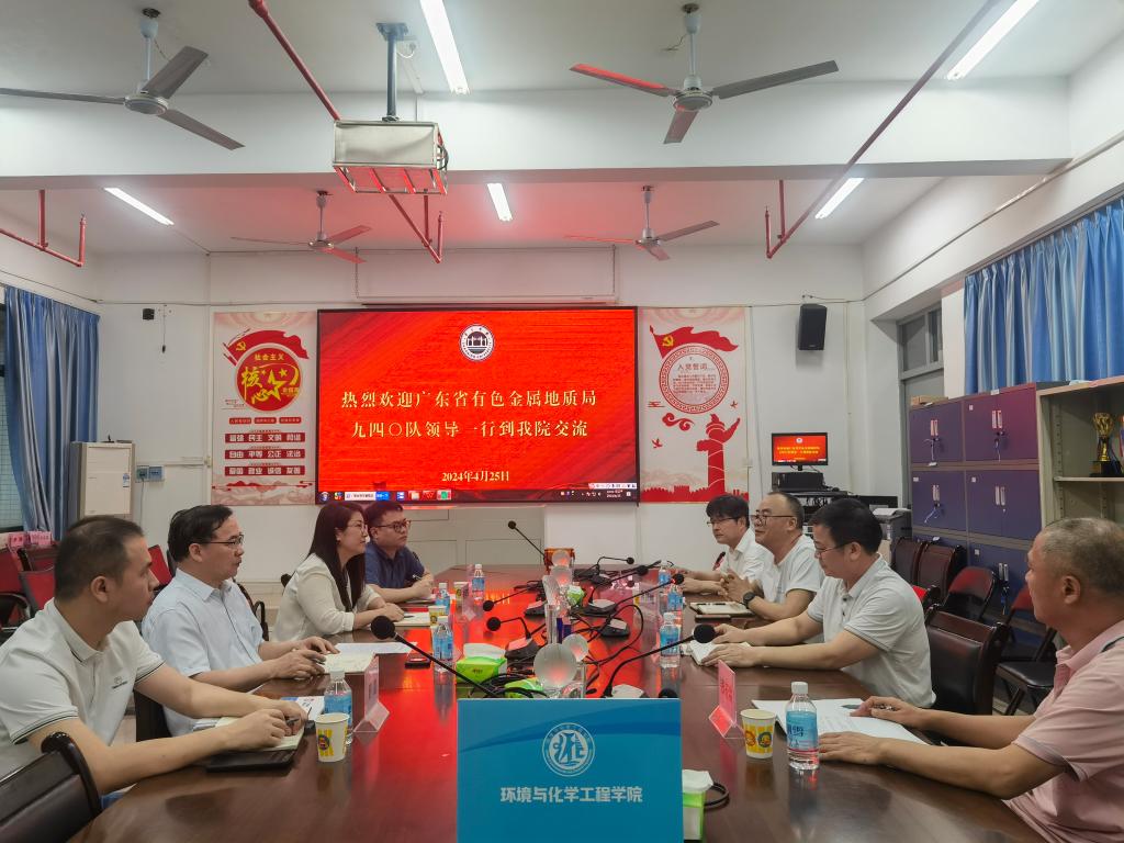 4月25日,广东省有色金属地质局九四O队党委书记、队长温汉辉,副队长韩丽杰一行到环化学院进行工作交流,环化学院党委书记刘远君、副院长吴贤格等出席座谈。