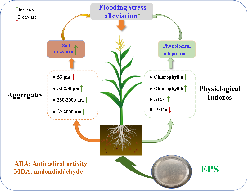 图5 EPS用于优化土壤结构、降低玉米涝害的过程机理