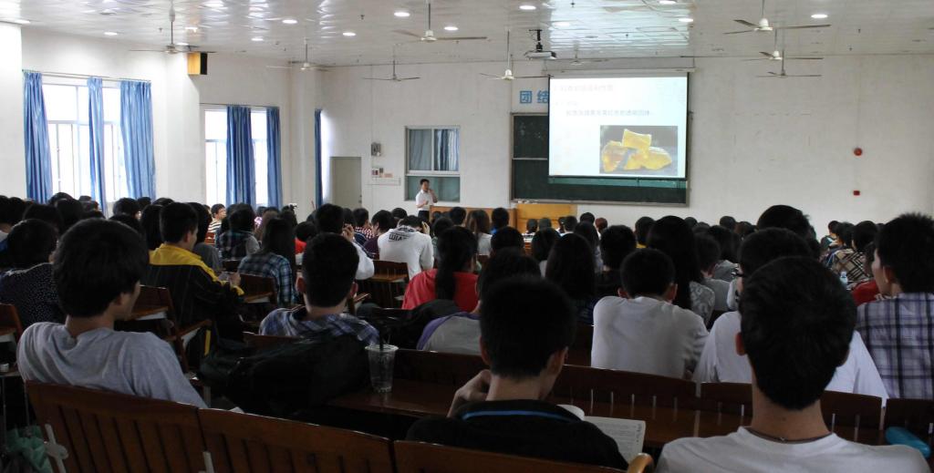 在两个多小时的讲座中,周董事长为师生们介绍了他们公司的基本概况,并对公司生产的产品——松香、松节油进行了全面、详细的介绍。周董事长从割松脂到产品的生成,可谓是面面俱到。让师生们了解到松香、松节油的的市场前景良好,用途涉及广泛,可应用于涂料工业、油墨工业、电气工业等诸多行业,且松香、松节油已经拥有很完善的生产工艺。
