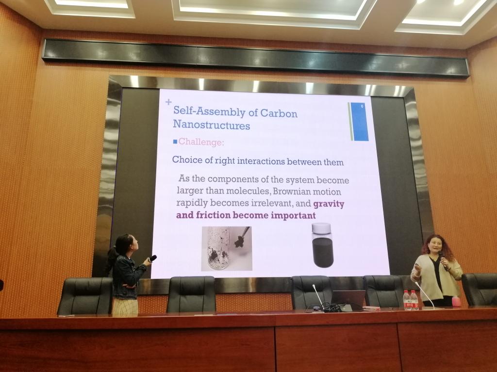 Dr. Mildred从自己多年的学术研究成果出发,针对学生的专业特点,围绕二维材料(二硫化钼、二硫化钨,特别是石墨烯)的制备以及在环境和化学领域的先进应用技术探索进行了介绍。比如应用石墨烯功能材料制备化学传感器,有效测定烟气、水体的污染成分;通过表面改性制备辅助水裂解的功能材料、储能材料等;在水污染治理方面,设计特性材料进行油水分离、脱盐、去除有机污染物等方面的研究。Dr. Mildred将研究的科学性与生活的实践性相结合,讲座内容深入浅出,进一步开阔了老师的学术视野,调动了学生的学习和科研兴趣。(撰稿、摄影:戴敏)