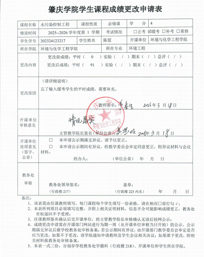 williamhill学生课程成绩更改申请表公示